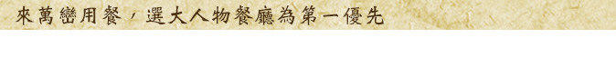 本餐廳之所以取名為〝大人物〞因為我們尊重每一位來用餐的客人,不管是大人小孩、老年婦孺,都是我們的重要貴賓,我們會用最真誠的態度,將每位客人當成我們專屬的大人物,用心為您服務!