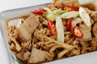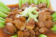 | 「四炆四炒」的客家大菜之一,用的是豬五花肉。「封」字是指烹煮時不掀鍋蓋,將食物密封在容器內,一直炆到爛熟,另外,「封」也有豐盛甚至「敕封」、高升封官的寓意。 本店選用屏東豬肉,經由細火慢燉的烹調方式,肉質滑嫩富彈性,肥肉略抿一下便入口即化,瘦肉部分軟爛、不塞牙,這道菜也是喜宴中會出現的經典菜之一。 |