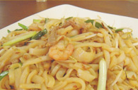 | 選用客家再來米製作的客家粄條,口感Q、具有彈性,用酥炸過的油蔥酥,佐以韭菜、豆芽菜、肉絲和蝦仁,炒成乾乾爽爽的美食,那濃郁的油香味,令人難以忘懷。 |